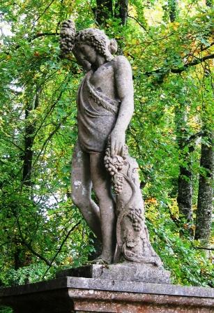 Bacchus was the Roman God of wine, known as Dionysus to the Greeks. He represents the social and beneficial effects of wine, as well as its intoxicating power. He is usually represented, as in the case of the statue in Emo Court, with a bunch of grapes in one hand. A vine climbs up beside him.